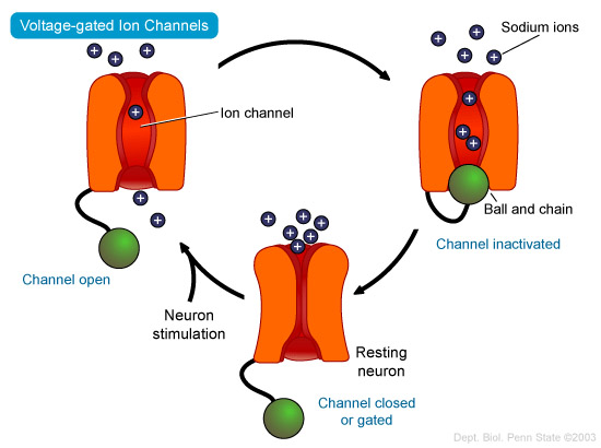 To see an animation of the channels in action and the flow of ions both into, and outside the cell, follow this link.
