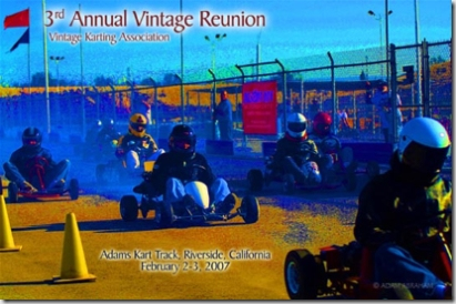 I traveled to California last week to cover the 3rd Annual Vintage Karting Association Reunion event, at Adams Kart Track, in Riverside, CA. This was one fine gathering of the pioneers of the sport of karting, which has become the cradle of professional motorsports, as well as the perpetual playground for the “quick at heart” of all ages.