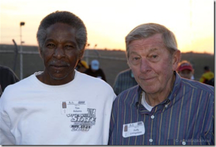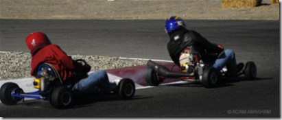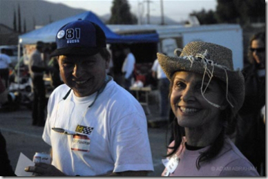 Adams Kart Track, where this event was held, is noteworthy because it is one of the first built — in 1960 -specifically for the fledgling sport of karting, and has been in continuous operation since then. Owned and run by the Adams family, who turned farm land a Mecca of fun for “hot shoes” from all around Southern California. There are five remaining (2) brothers and (3) sisters of the original eleven children of Frank and Mary Adams. That’s Tim Adams (on the left) pictured above with Duffy Livingstone.