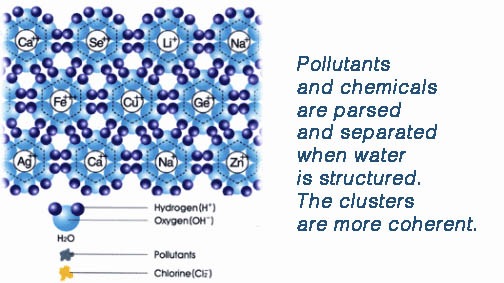 Getting a handle on this structured water concept can be a challenge for linear, “show me the numbers,” left brain-dominant people. Evidence is there, mind you, but you sometimes have to look for it differently. As a first impression, upon taking my first shower with structured water, I noticed that it feels “wetter” than what was coming out the showerhead only minutes before. I now understand that this feeling is what is generally referred to as “soft.” This is one indication of smaller cluster sizes and higher density and hence greater oxygen content in the water. Structured water shows great promise as a salt-less water softener. And as this missive moves along, you’ll see another area of great potential.