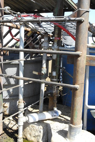 I visited the dairy in late August 2009, in the heart of Arizona summer, and talked to Mick, who manages the facility. They observed an immediate change in drinking patterns. The cows drank less water. The herd (130 head) had been drinking around 1,800 gallons of water per day for several days. Then, consumption would spike to over 4,000 gallons, then return to the lower level. After the structuring devices were installed, water consumption leveled off to around 1,800 gallons each day.
