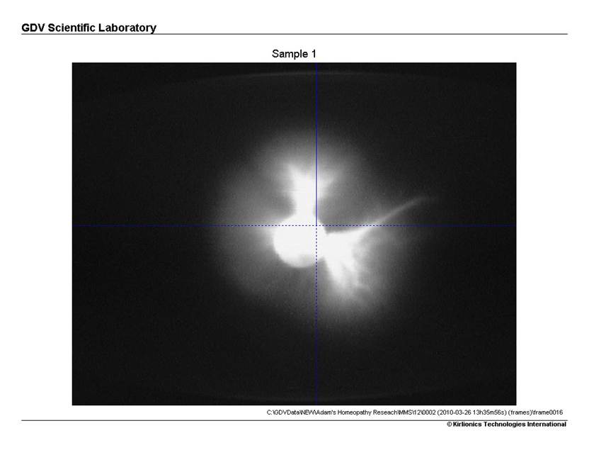 As you might imagine, I was very excited to see this. Not only were the images remarkably similar in appearance, but the analytic data indicated that the quality of the energy was low in entropy. In other words, the energy of the MMS, and the Vibrionic derivative, were both of a type that, if you knew nothing more about them other than this quality, would indicate a beneficial effect. These images, confirmed and supported by GDV analysis, tended to explain why (1) MMS has been so helpful for to so many, and (2) why a vibrational derivative might also work.