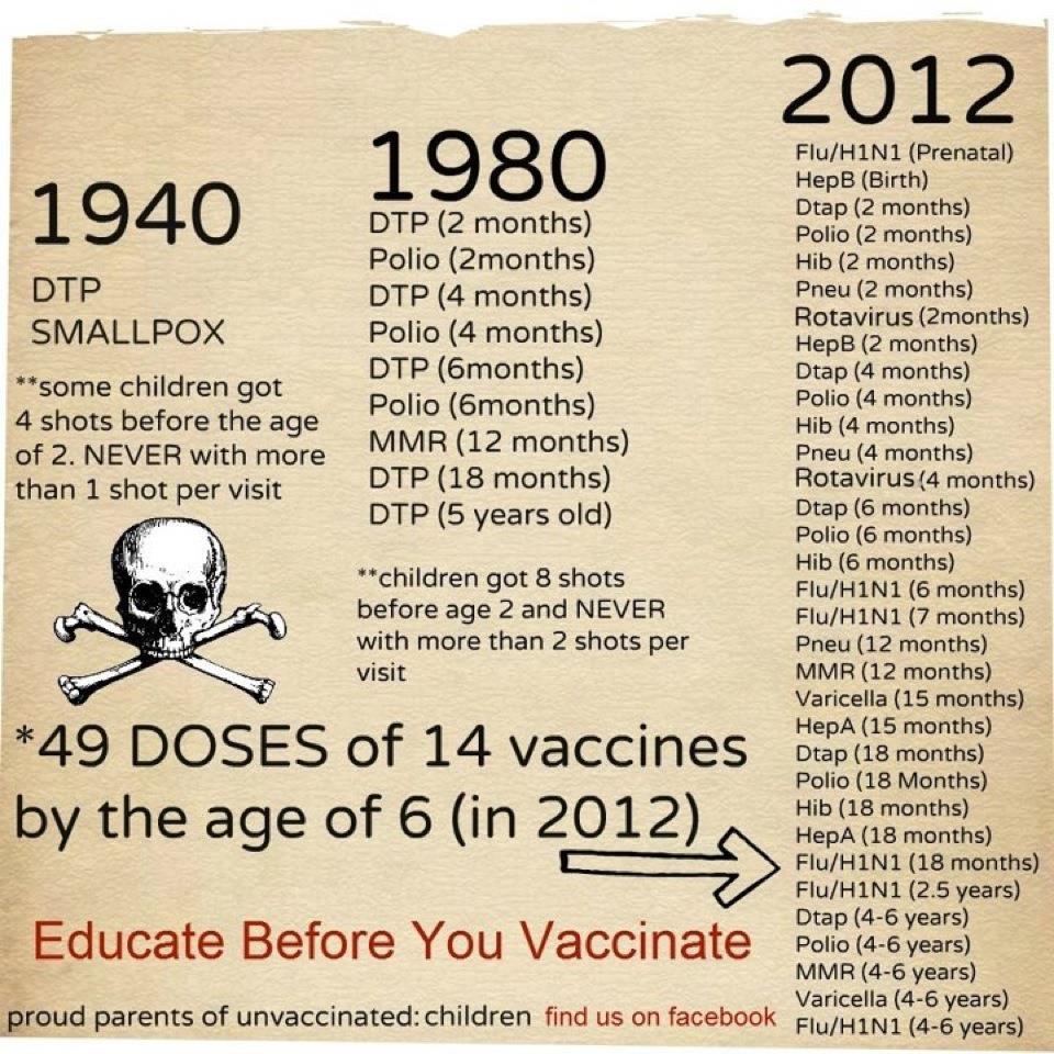 If there is even a shred of truth to the graphic, then this is cause for concern. Both of my children received vaccinations as they were coming up; my son in 1977 and daughter in 1985 as a requirement for enrollment in California public schools. Yet, if vaccinations themselves are not really helpful… to put it another way, if vaccinations are really dangerous to the human, then requiring a parent to submit the child to vaccination is nothing less than extortion, and contributes to a greater conspiracy.