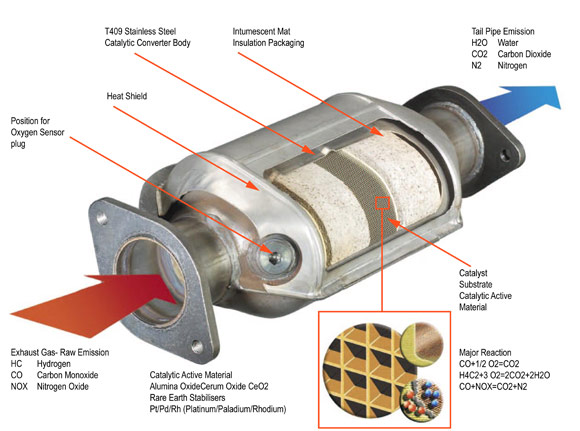 To handle the fuel that does not burn, the “catalytic converter” is a recycling system introduced in 1975 that uses chemical reactions to process the “toxic” fuel after it has left the engine and EGR systems, in an attempt to reduce emissions. If there was greater efficiency in the combustion, neither the converter nor the EGR systems would be needed, and the exhaust would not be “toxic,” as it would contain little to no carbon.