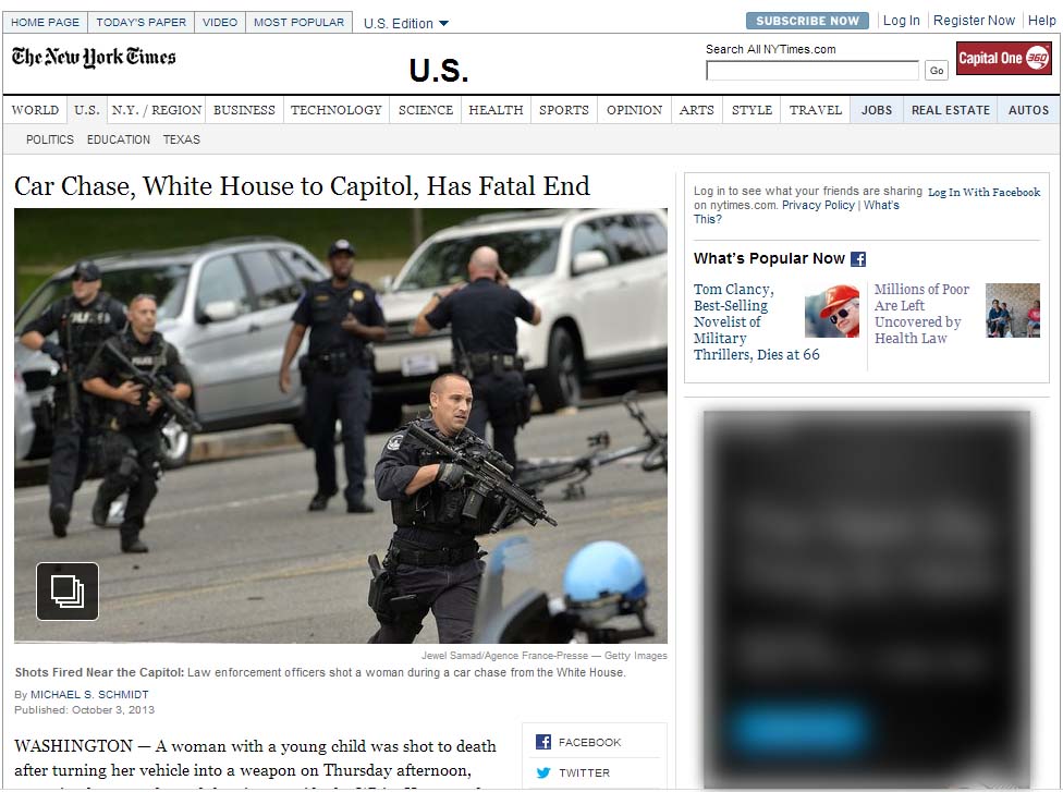 Miriam Carey, unarmed, whose “accomplice” was her 1-year old child, drove through a “random checkpoint” that law enforcement authorities set up near the White House, as part of U.S.A Theater Company’s “Government on Furlough” program.