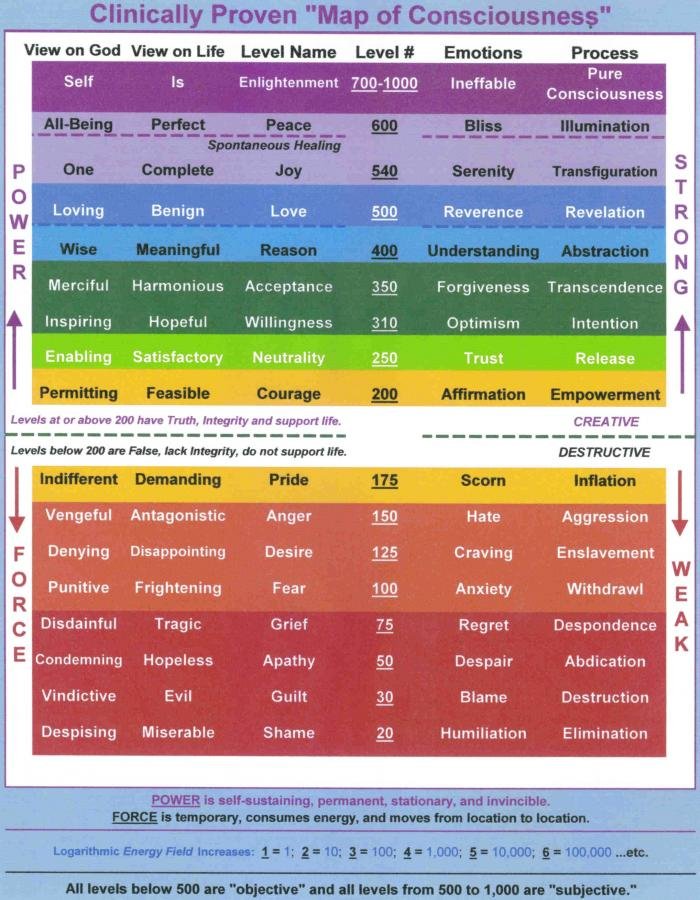 One other powerful element of Power vs. Force that Hawkins introduced, was the Map of Consciousness.