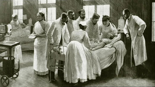 A hospital labor room; circa 1847.