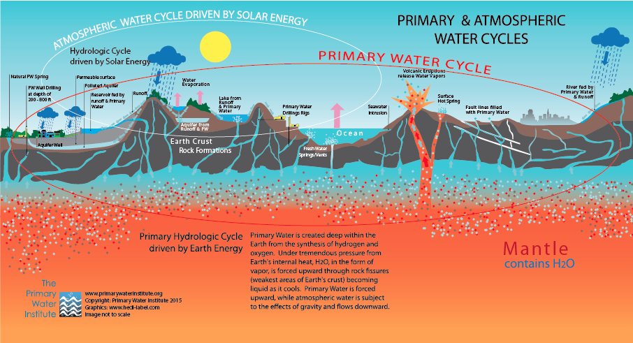There is several times more primary water *in* the earth than ALL the water *on* the surface, oceans included. (SOURCE: Primary Water Institute)